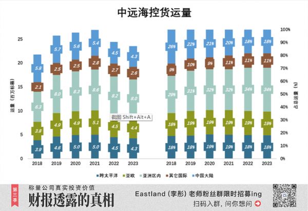 以中远海控为例,2023年货运量为2355.5万标箱,同比下降3.5%。其中: