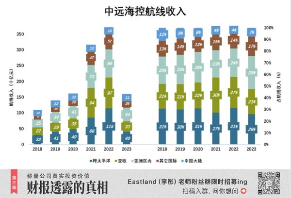 “跨太平洋航线”收入404亿(同比下降64.9%),占总收入的26.2%(过往五年均值为19.3%);