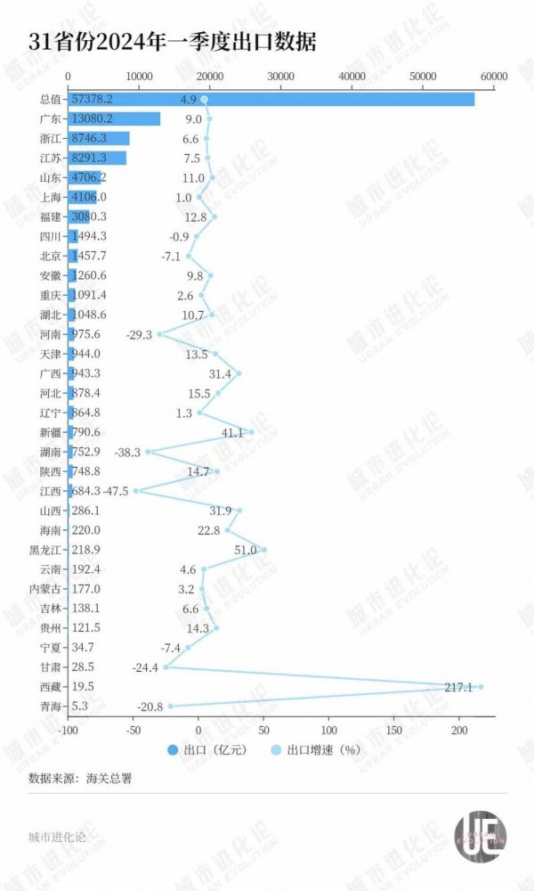 一季度整体外贸数据向好的形势下,省域外贸分化的趋势越发明显。