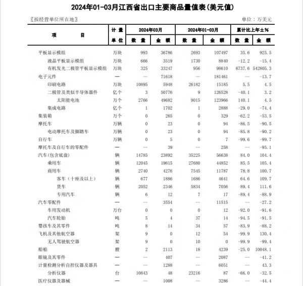 这对于外贸结构调整,增长抵御风险的能力显然具有重要意义。即便是一季度外贸增速垫底的江西,“新三样”依然取得亮眼的增长: