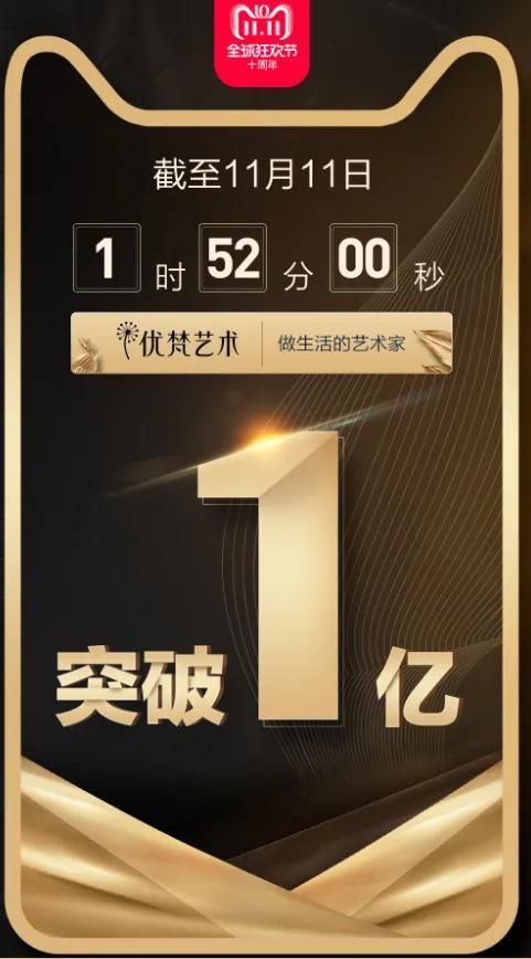 图片来源:优梵艺术官网(百度网页快照)据上游新闻,2018年“双十一”,优梵艺术曾创下了一系列令人震惊的记录:1分钟破千万元、29分钟突破5000万元、1小时52分钟破亿元、销售额同比达去年163%……