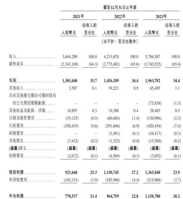 招股书显示,2021年至2023年,茶百道的营收增长情况良好,分别为36.44亿元、42.32亿元和57.04亿元,同期净利润分别为7.79亿元、9.65亿元和11.51亿元,三年合计赚了约29亿元。