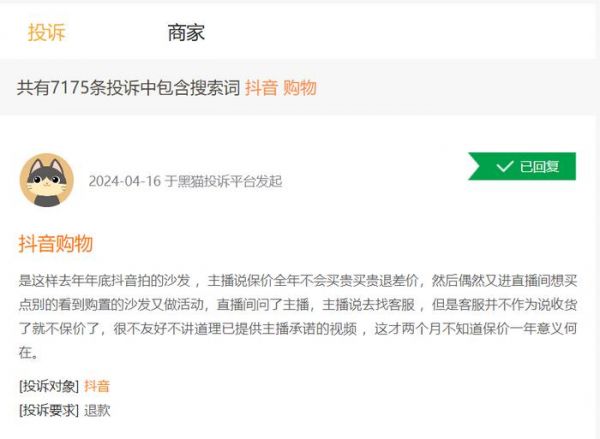 而翻看投诉内容,不乏消费者在抖音平台购物,售后出现价格纠纷、售后服务纠纷,以及消费者与商家无法达成一致,而平台却“坐视不管”等问题。