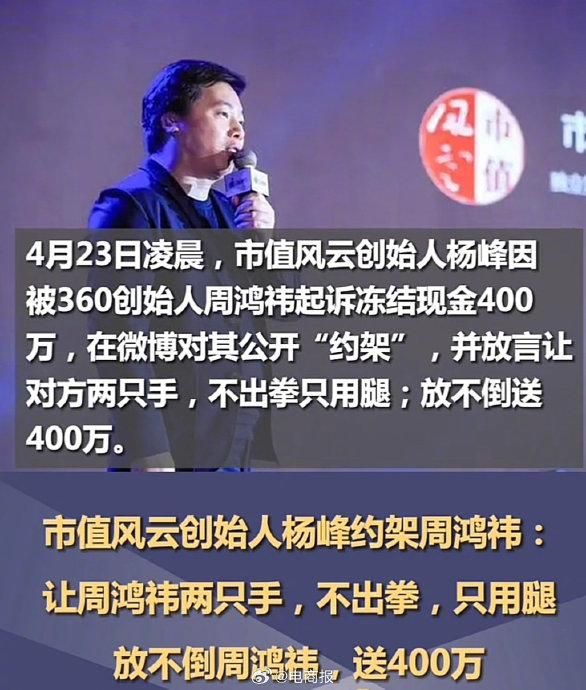 因被起诉冻结现金400万,市值风云创始人杨峰约架360周鸿祎:不出拳,只用腿…