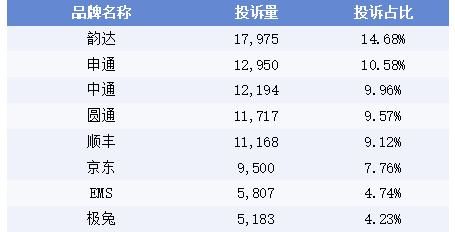 韵达、顺丰、申通等知名品牌投诉上榜,快递行业服务亟需提升