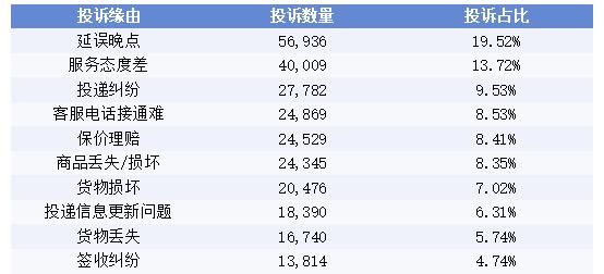 快递服务投诉问题Top10