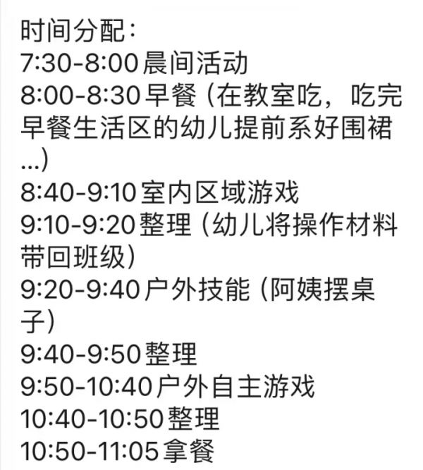 孙小田细数她每天的行程安排,“简直就像风火轮一样转个不停。”小朋友入园后,她得带着孩子们一起转呼啦圈,而后吃早饭,开始区域性游戏课程,“做饭的做饭,织围巾的织围巾。结束后继续转呼啦圈、吃午饭,睡觉……”周而复始,无论是孩子,还是老师,身心俱疲。