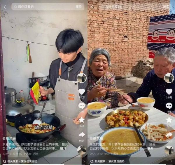 乍一看,“高艺辰”是一位普通的三农领域创作者,但他凭借上得厅堂、下得厨房的勤劳能干,和不经意间流露的羞涩,让网友为之“上头”,这正是“媳妇哥”的独到之处。