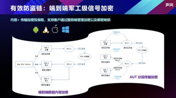 针对赛事直播过程中观众侧质量难以追溯的痛点,声网赛事直播解决方案提供了强完善质量工具“水晶球”,不仅可以为平台方提供实时质量监测,还能快速定位卡顿观众端。除此之外,该方案还提供了军工级信号加密,实现端到端传输和内容双重加密,有效防盗链。