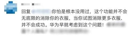 还有人表示,“这个功能并不会无底线的消除你的衣服”“你不修不就行了”。