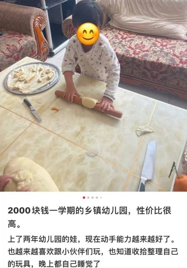 由于乡镇幼儿园的起点本身没那么高,之后孩子随便努力努力就都是上坡路,因此中产父母们也从不会计较什么,反而是放低了对孩子的期待。“由于前期成本投入不多,所以也不求孩子有什么出息。就算跟不上市重点小学的节奏,也会安慰自己这是正常的。”
