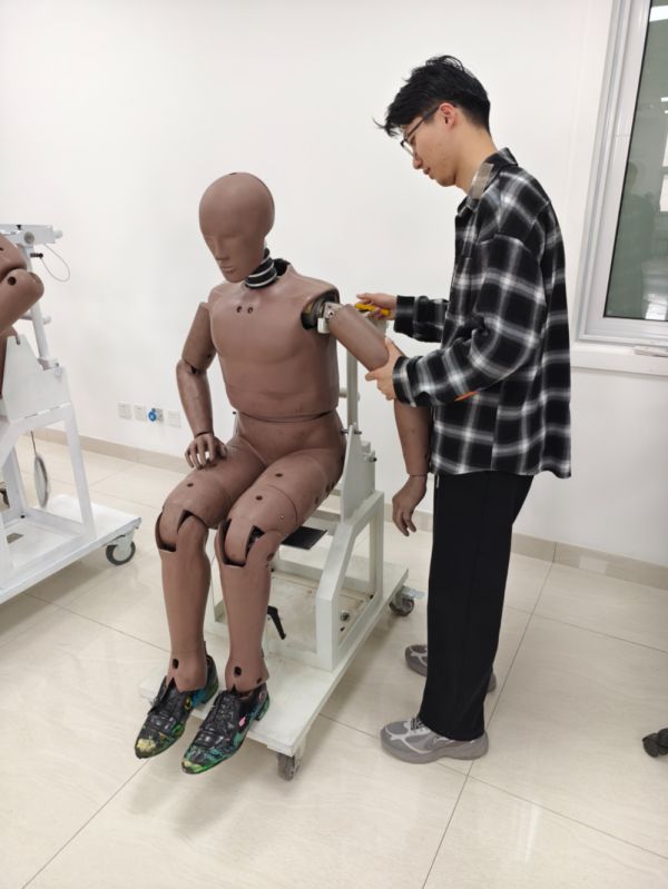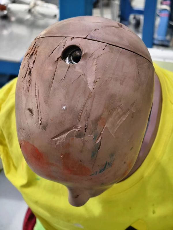 2022年底,我们团队制造出了和国外一模一样的假人。大概经历了四轮大的迭代,有的版本表面上看跟人家的一样,实际上一做起试验来千差万别,比如碰撞试验中人家的脑袋没掉,我们的掉了,这就是性能不行。在研发过程中,光碰撞试验我们就做了两三百次,一次得花费十几万块钱,成本还是很高的。