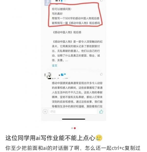 邹丞对此感到有些不解,便给足了这位同学时间,让他在教室里完成,可最终交上来的作文和平常云泥之别。后来,邹丞与学生家长一起询问才得知,原来他平常的周志是用AI写的。