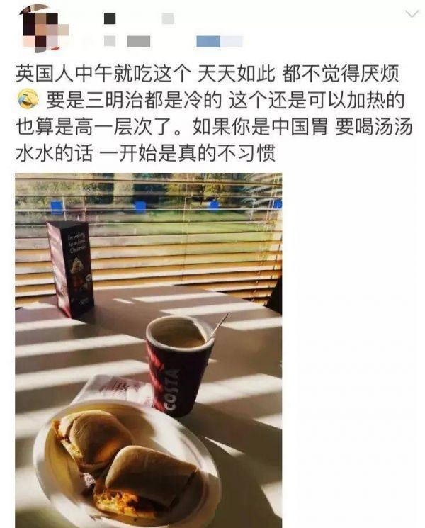 只是苦了那些英国长假旅游或者留学的中国人。只有头几天他们还觉得一切都新奇美味,之后吃三明治的每一天,他们都会越发想念祖国的美食,求三明治放过。