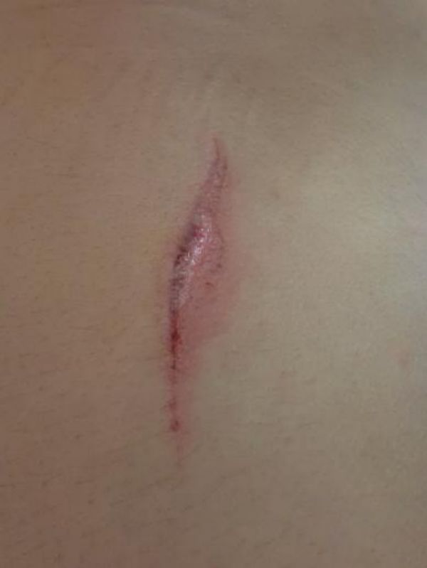 李凯工作过程中受伤,腰部留下3厘米伤口