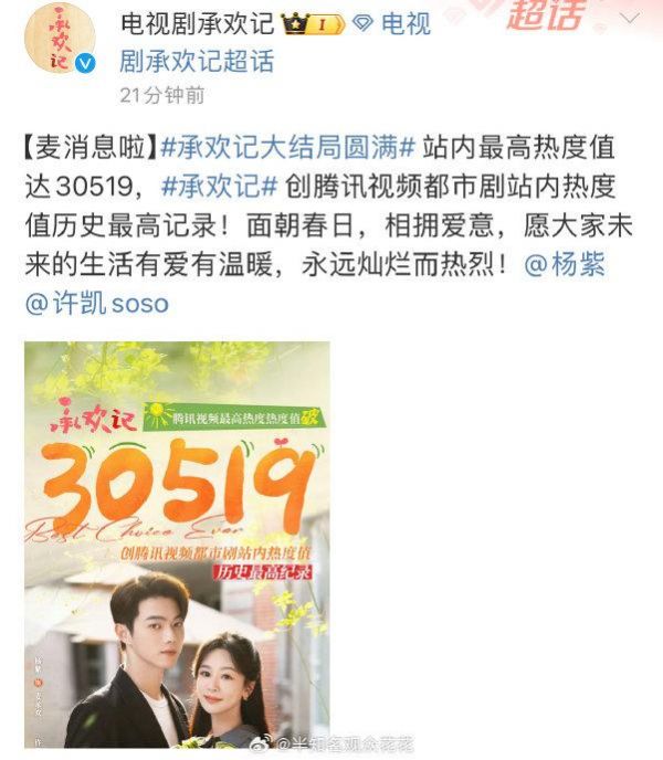 #承欢记站内热度值创记录##承欢记腾讯站内热度值创记录#