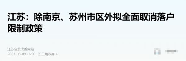 前不久,江苏发布落户新政,除南京、苏州市区外,拟全面取消落户限制政策。