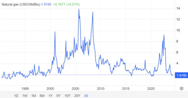 原因在于此前美国暖冬天气导致市场对天然气的需求减少。与此同时,原油价格持于高位则导致钻井活动活跃,在钻探石油的过程中,天然气通常会作为副产品被生产出来,这会令天然气生产过剩,进一步打压了天然气价格。