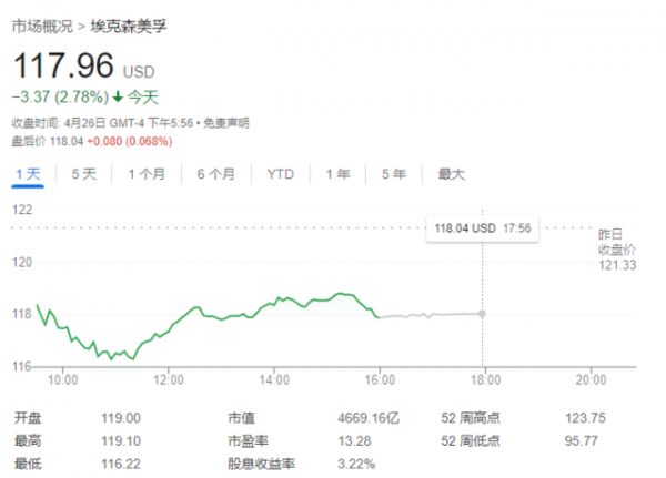 由于财报公布后盈利未达预期,周五埃克森美孚的股价一度跌超3%。
