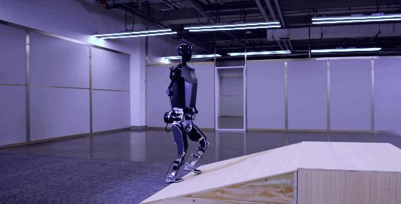 发布会上,“天工”还为现场观众带来了一场精彩的“演出”,展示出“天工”对复杂环境更强的适应性,在行走及奔跑时更快速、更拟人,已实现6km/h的稳定奔跑。同时,在盲视情况下“天工”能够平稳通过斜坡和楼梯,对磕绊、踏空等情况也可以做到步态的敏捷调整。充分说明了运动控制方法对各种地形的强大适应性,在后续开发的基于感知的步态后,将带来更强的通过能力。