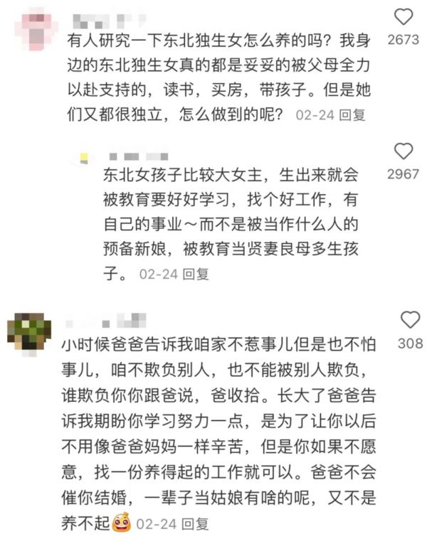 (作为东北独生女的网友评论)