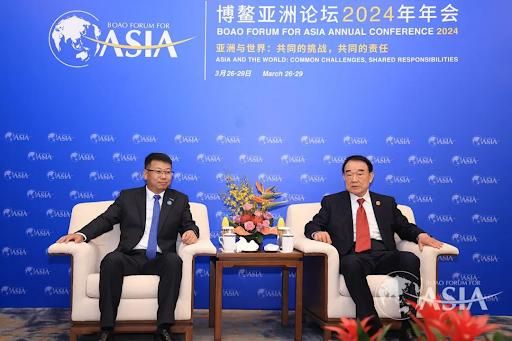左一为胡柏山,图/博鳌亚洲论坛不仅是 vivo。三星也公开宣布将与高通、谷歌联手打造一款 MR 头显,计划今年内推出;Meta 更是从 Quest Pro 开始就转向了 MR;Pico 以及更多的 VR 厂商,也都在将目光从「虚拟世界」转向「数字世界与物理世界的融合」。