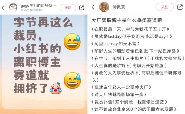 大家伙开玩笑说互联网大厂们别再裁了,再裁下去连离职博主赛道都要内卷了。
