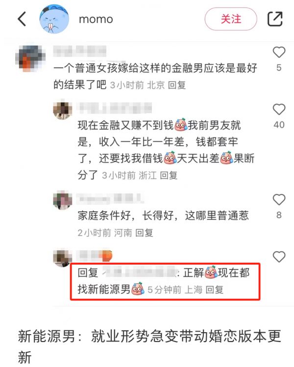 有的讨论中,“新能源从业者”的标签被认为可以取代“金融从业者”原本在婚恋市场的光环。