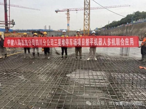 以科技创新推动建筑业转型升级,以智能建造引领未来建筑潮流。近日,在中建八局西南公司三星堆停车场项目底板浇筑过程中,多台混凝土整平机器人集体亮相,实现大面积混凝土板面整平高效化、自动化、智能化施工,为三星堆停车场项目的建设注入了新的科技力量。