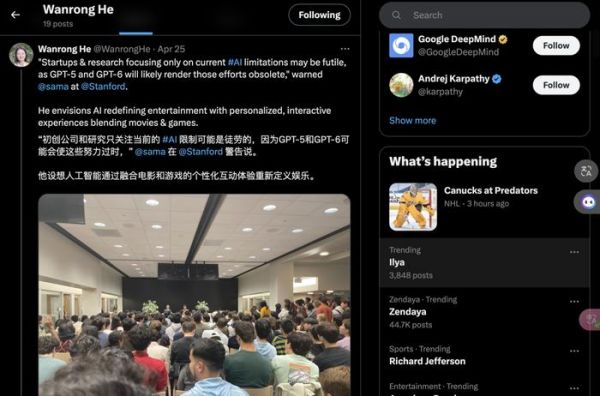 4 月 25 日,OpenAI 首席执行官 Sam Altman 在斯坦福进行了一次闭门演讲,谈论了人工智能的发展与对社会的影响。斯坦福大学 CS 系的 Wanrong He 在「x」上总结了 Altman 的演讲: