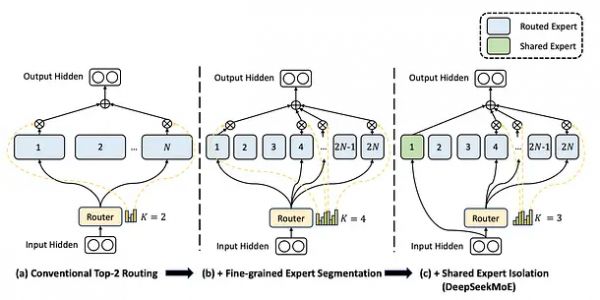 DeepSeek-MoE 引入了“细粒度/垂类专家”和“共享专家”的概念。