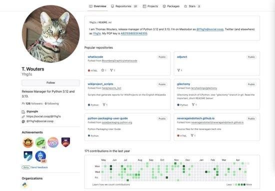 Thomas Wouters 现在是谷歌员工,是 CPython 核心开发,在 Python 指导委员会任职 8 年多,同时也是 Python 3.12 和 3.13 的发布经理。