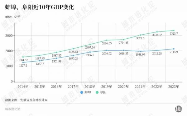 一个更直观的经济增势对比是:近十年间,蚌埠与阜阳之间的GDP差距从357亿元扩大到了1207亿元。