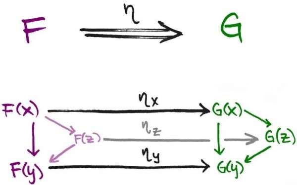 自然变换(natural transformation)可以类比为泛函,函数与函数间的映射。