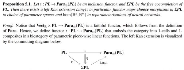 第二,分段线性函数PL构成pretopos,ΣPL 是PL 的cocompletion,Para(PL)是PL的参数化范畴,可以发现,存在函子将ΣPL中的choose态射,map 到对参数空间和范畴态射的选择,以对神经网络进行再参数化。