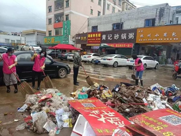 暴风雨后,社工们正在扫马路 | 图源受访者