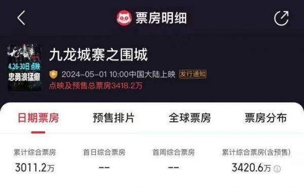 《九龙城寨之围城》票房超过3000万元(图源:猫眼专业版)