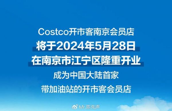 在此之前,Costo开市客已宣布南京会员制加油站将于2024年5月9日率先开业。