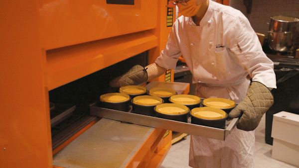在视觉上,KUMO KUMO采用了高饱和度的橙色作为主色调,从门店设计、产品包装到小票,全是橙色,给到消费者感官刺激;门店设计成全透明玻璃,公开每个制作细节;在服务上设置了不少细节,比如员工要双手递出产品,撕蛋糕皮时若让蛋糕破损,将不再销售,每一炉蛋糕里必有一个满印的“盲盒隐藏款”,蛋糕出炉后会有摇铃烙印仪式等。