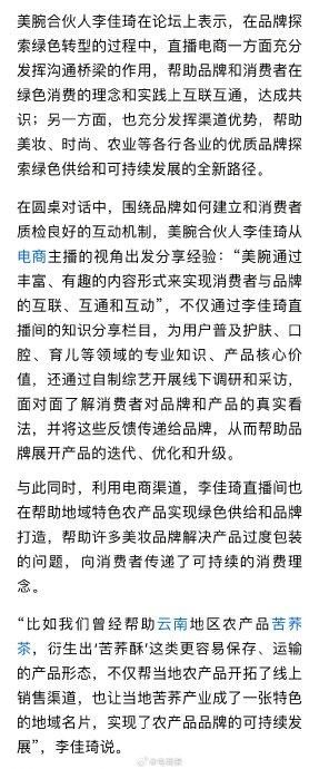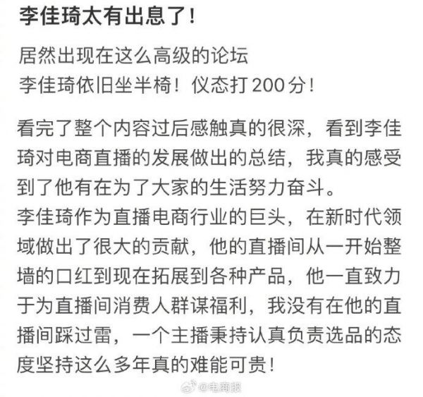 李佳琦出席人民日报论坛,谈直播电商对绿色发展消费的价值,网友点赞仪态200分。