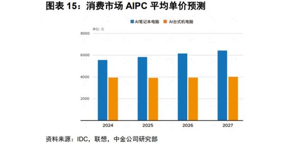 而在企业端,据IDC预测,AIPC价格将稳中有涨。原因在于,AIPC的性能提升后,能在战略上推动企业智能化转型,对企业有更高的价值。