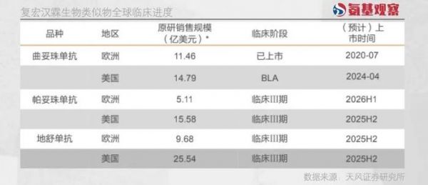 考虑到帕妥珠单抗2023年销售额约40亿美元,若复宏汉霖研发产品成为第一个欧美市场获批的生物类似药,未来销售规模无疑可观。