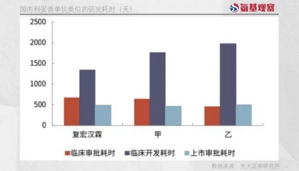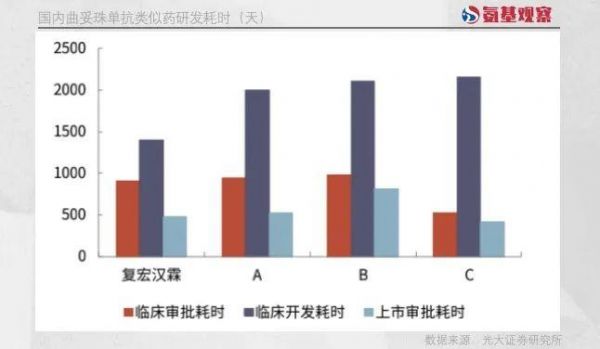 在利妥昔单抗类似药的赛道上,复宏汉霖再次展现了其执行力。复宏汉霖在该品种的临床开发耗时为1336天,同样是已获批上市的类似药中研发耗时最短的企业,并且同样毫无悬念的成为“首仿”。