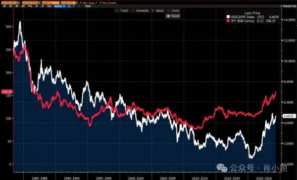 日元和美国国债收益率就像一对相杀连体婴——美国国债收益率一旦开始上翘,美元便精神抖擞,气势如虹,从这一刻起,连体婴日元便活在美元的阴影下,开始落体式贬值。日元与美国国债收益率走势一致,纠缠不清且紧紧相联。