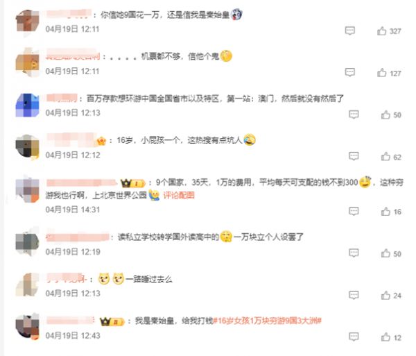 一整个下午,话题词都在热搜首页居高不下。“未成年”“穷游”“跨越亚非欧三大洲”,这些在李易珂看来无比平常的标签,以一种粗暴的方式被网络组合加工后,让她第一次体会到了成为数亿人焦点的炙热。