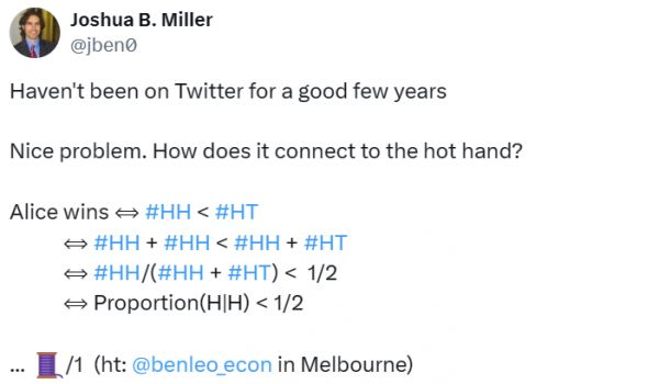 米勒也参与了对原题的讨论,并给出了一个直观解释。| 图源:jben0@twitter.com