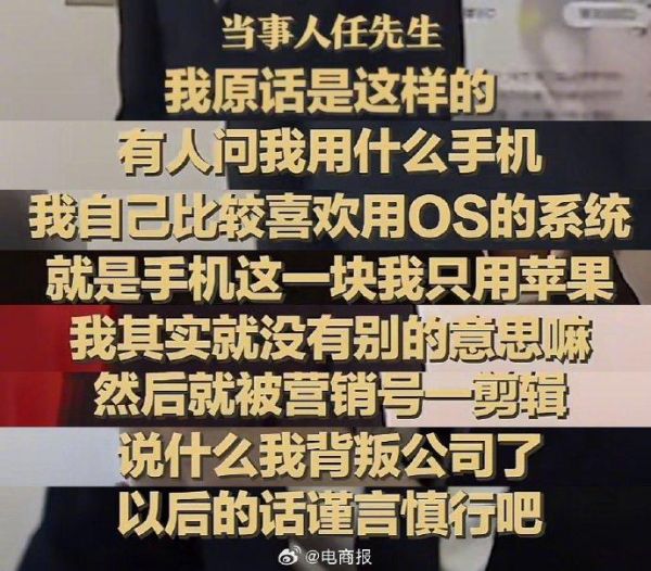 真戏剧,华为辞职hr直播间被封,曾因直播称自己只用苹果手机…