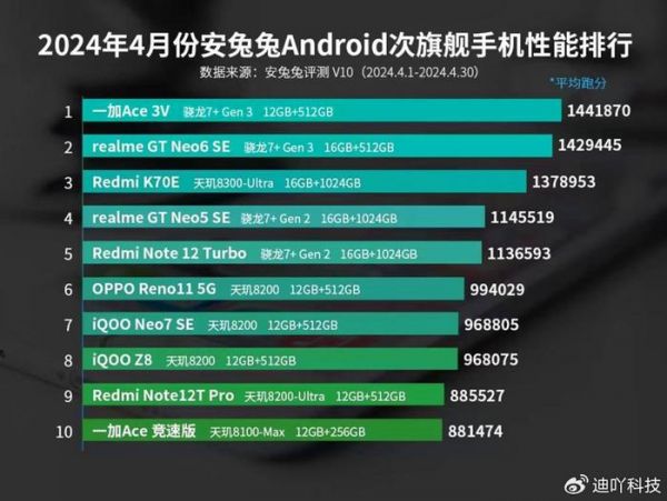 除了旗舰手机榜单之外,次旗舰榜单也出炉了,一加Ace 3V、realme GT Neo6 SE等次旗舰机型搭载了骁龙7+ Gen3处理器,并在性能上取得了显著的提升。
