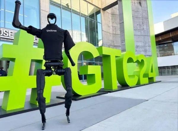 在3月18日举行的英伟达GPU技术大会(GTC)上,该公司首席执行官黄仁勋展示了9台人形机器人,其中两台系由中国公司开发。这些机器人展示了中国在机器人动力学、控制和人工智能方面的最新成果,进一步彰显了中国在全球人形机器人领域的领先地位。其中之一是杭州宇树科技有限公司的H1型机器人,为一款能奔跑的全尺寸通用人形机器人,其移动速度可以达到每秒3.3米,创下了全尺寸电驱动人形机器人的世界纪录。该机器人拥有出色的全身动态协调能力,能够编组跳舞甚至后空翻。