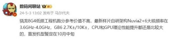 高通骁龙8系全新系统芯片曝光 跑分超骁龙8 Gen2